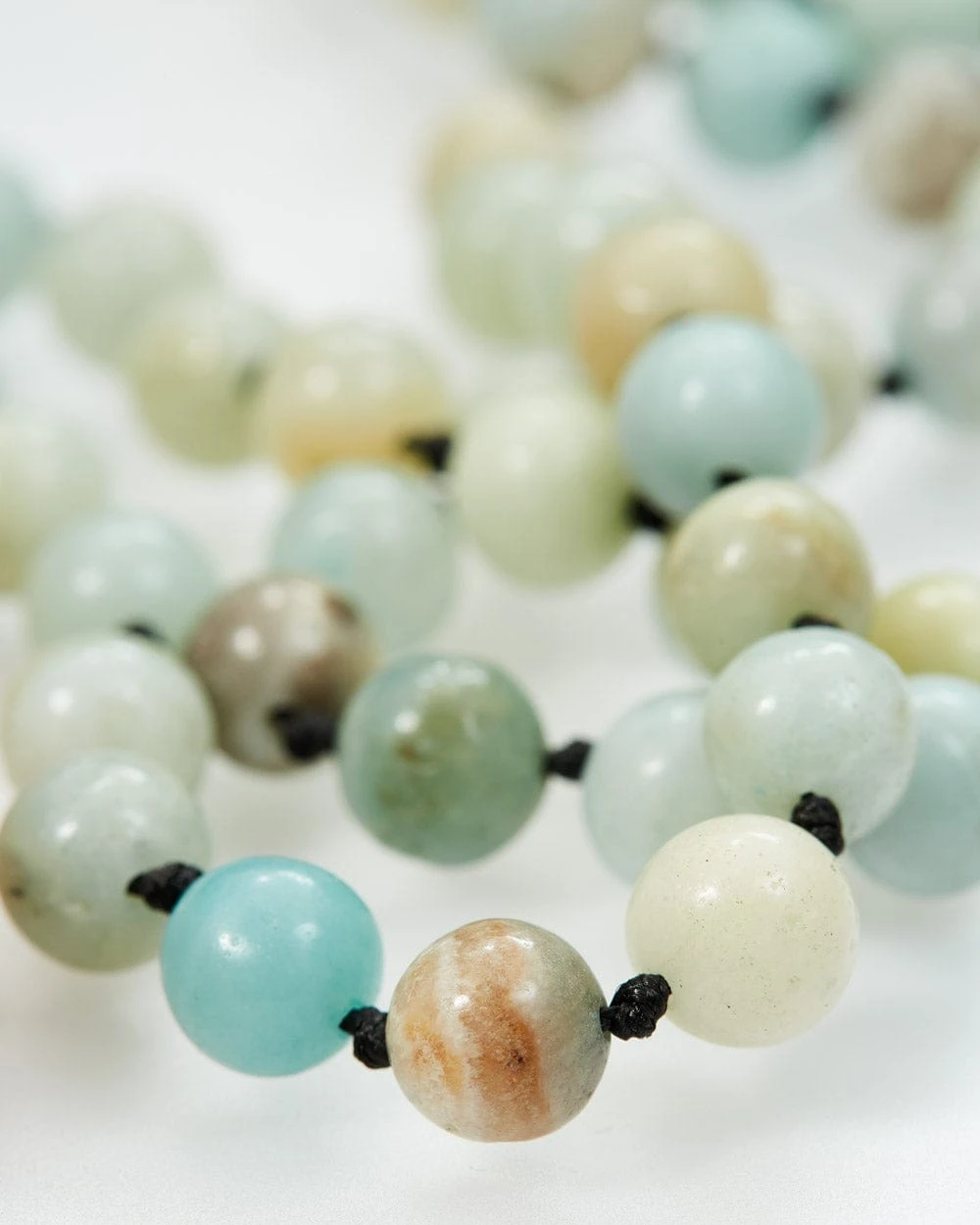 Whether you’re blocking toxic vibes or leveling out your own (insert purple devil emoji here), this hand-knotted Amazonite beaded necklace is your go-to for balance and calm in style. Amazonite, with its captivating blue-green hue, represents universal love, emotional healing, and harmony—perfect for those looking to keep the peace while keeping it cool.