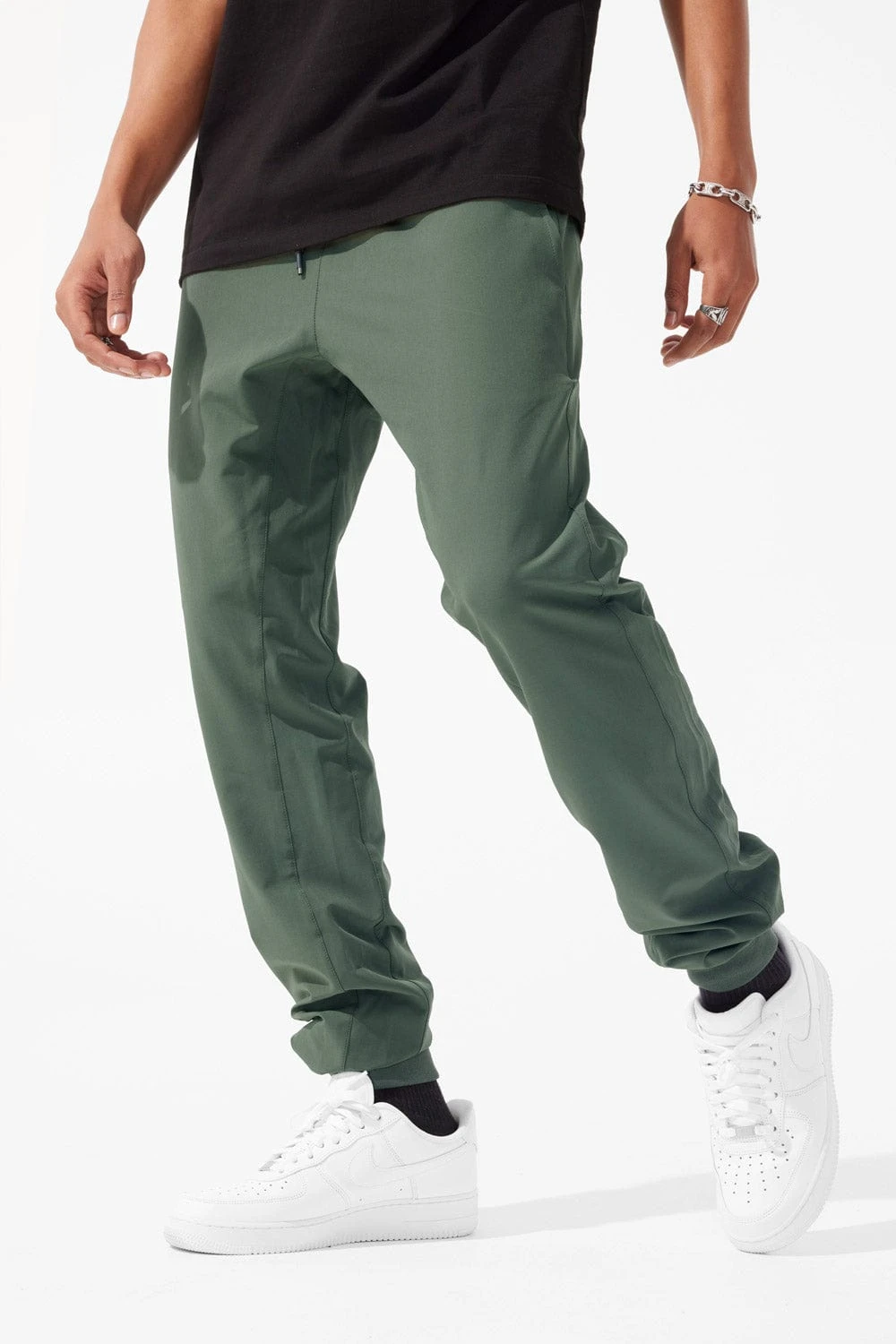 - Tapered-leg jogger silhouette