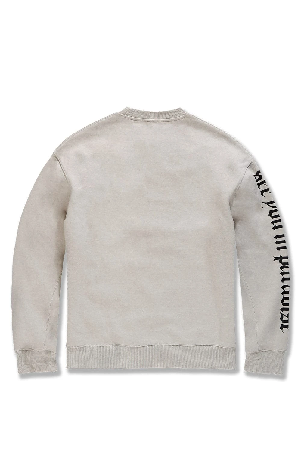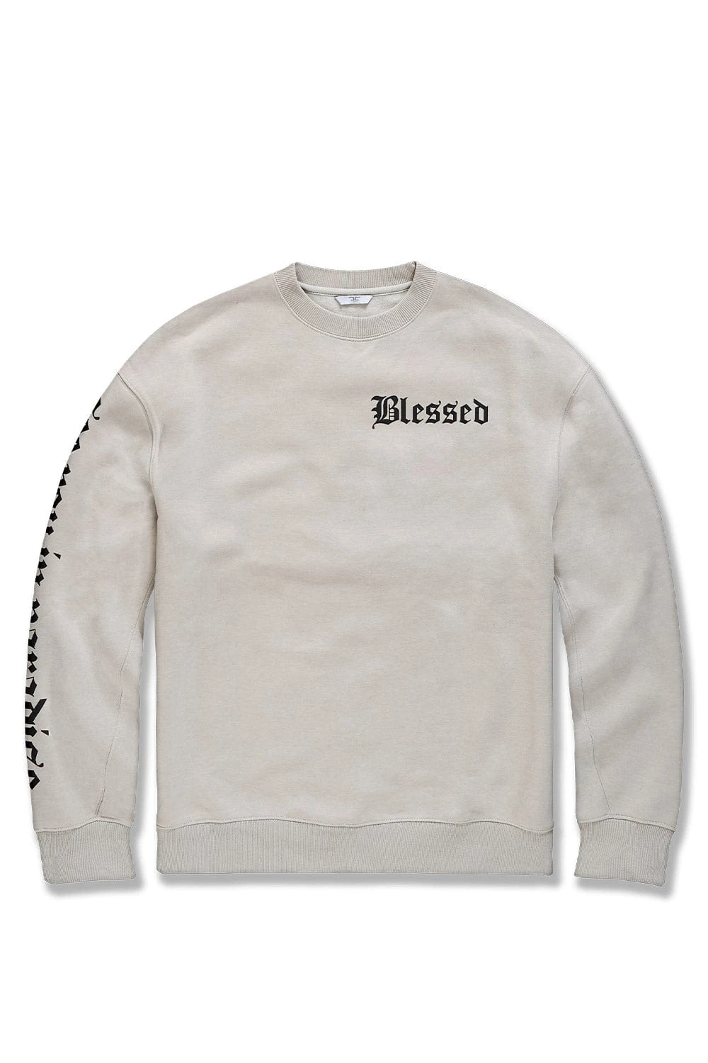 *Khadim is 6’1″ and weighs 170 lbs. He is wearing our Blessed Crewneck Sweatshirt (Size Large) in Concrete