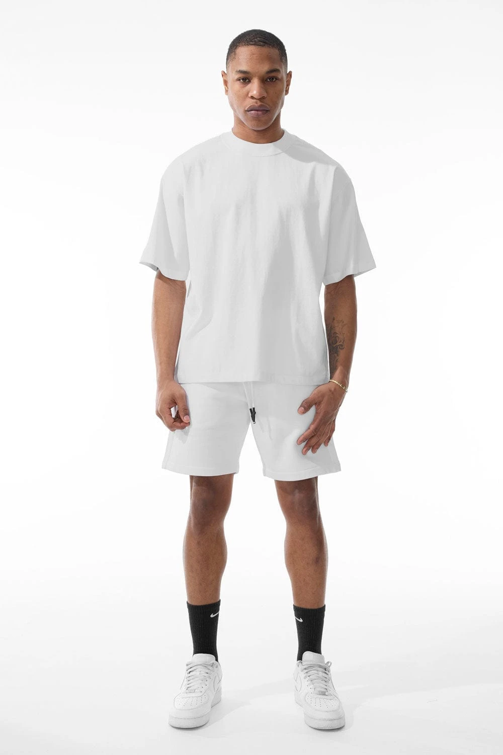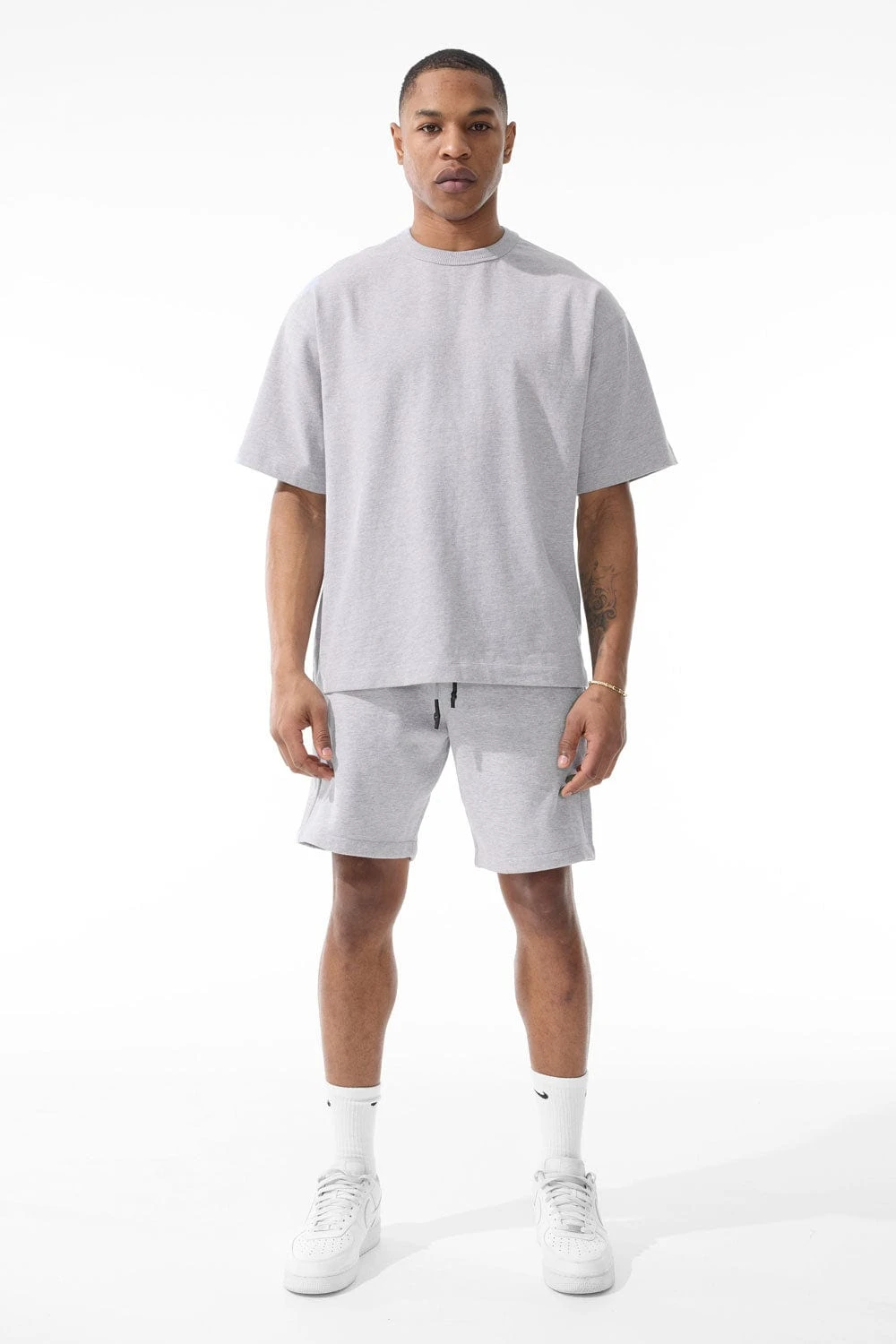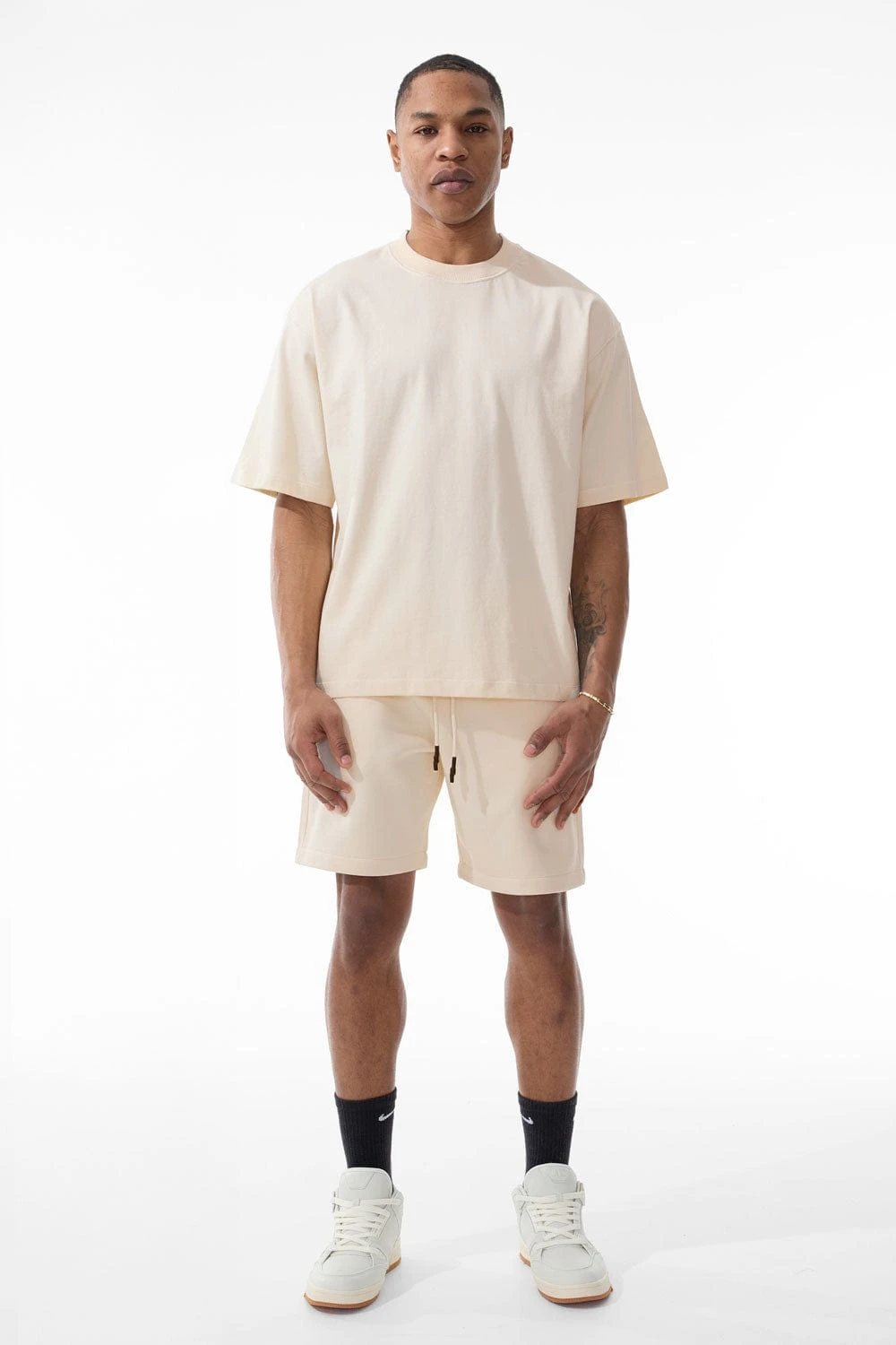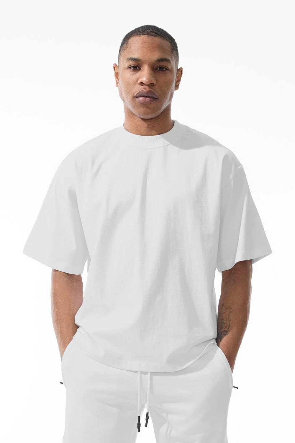 *Damaris is 6’1″ and weighs 180 lbs. He is wearing our Burbank Cropped Boxy T-Shirt (Size Large)
