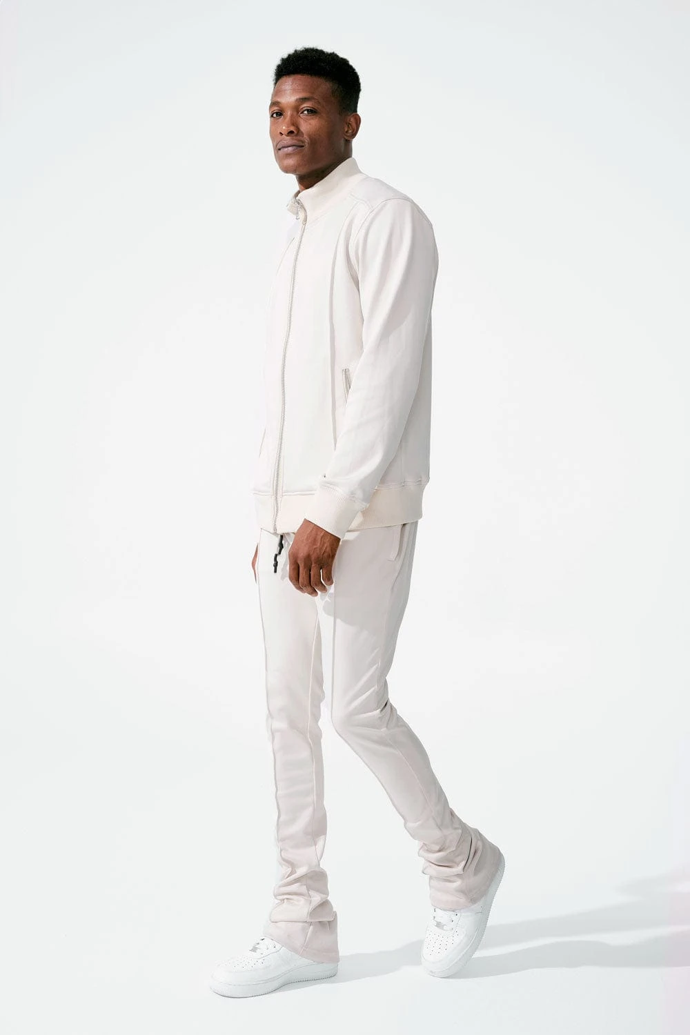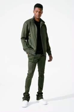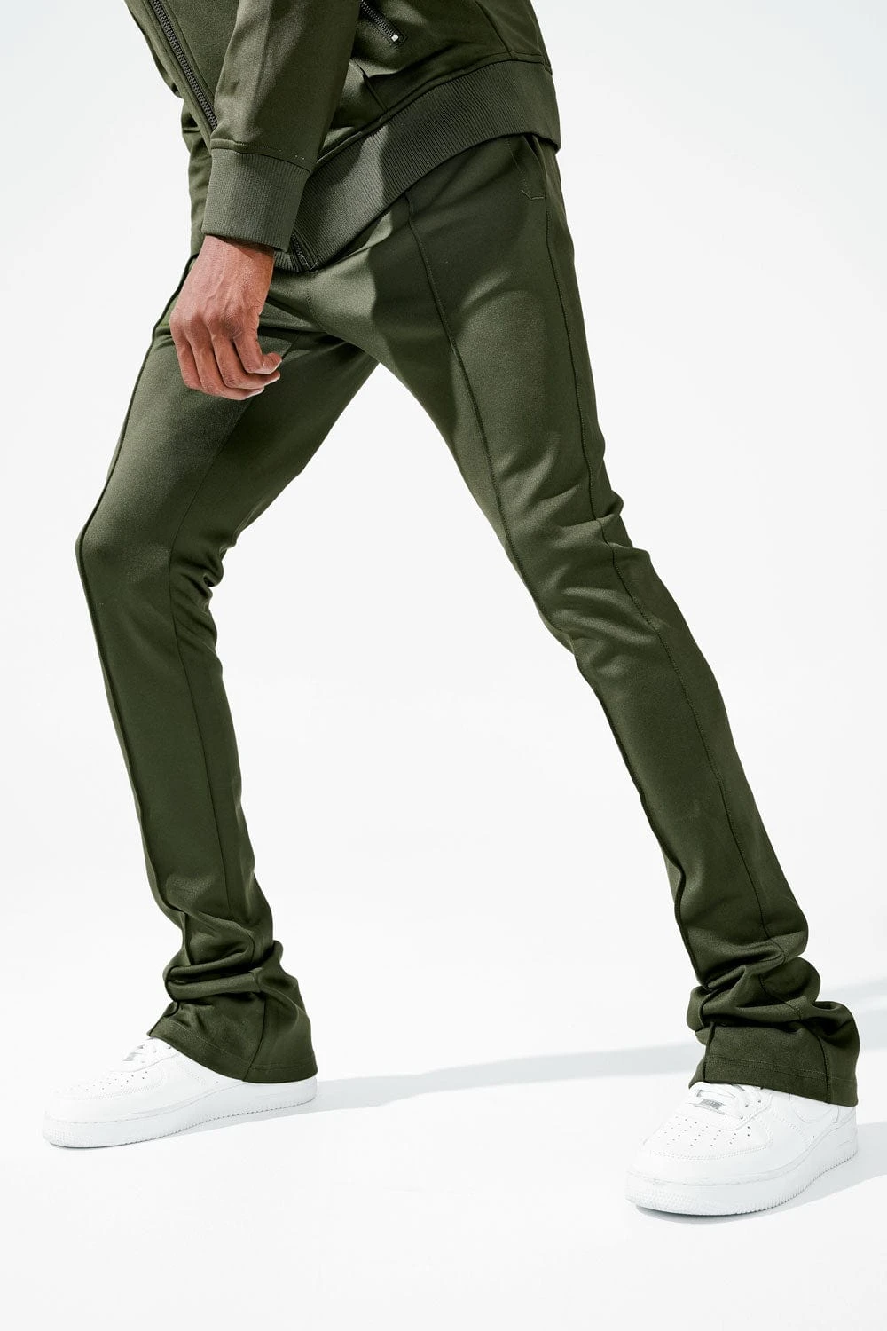 *Brandon is 6’2″ and weighs 180 lbs. He is wearing our Calabria Stacked Track Pants (Size Medium) in Black