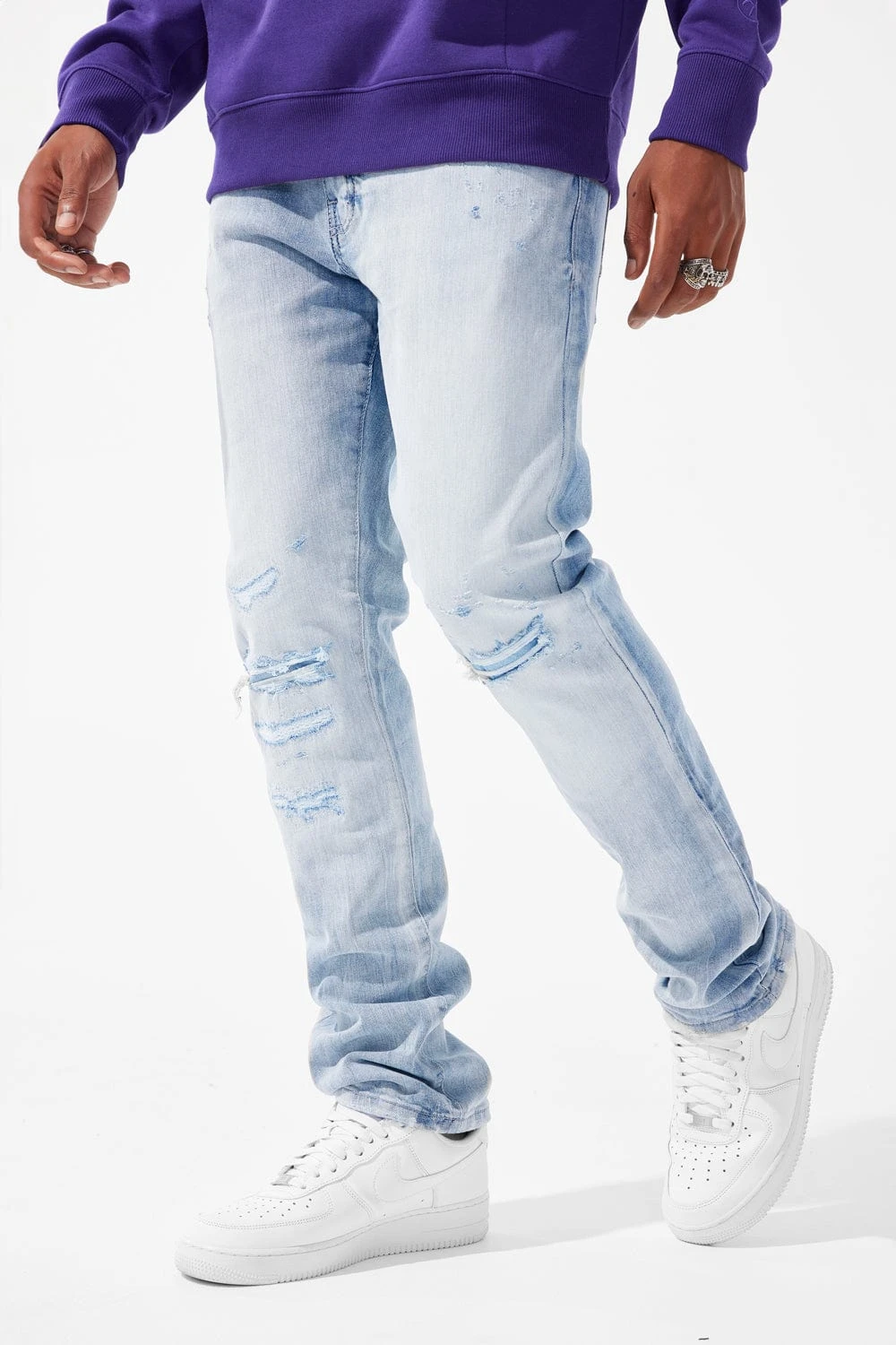 - Unique distressing details on each pair