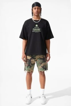 *Cozy is 6’1″ and weighs 170 lbs. He is wearing our Emeralds in Eden Boxy T-Shirt (Size Large)