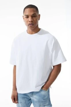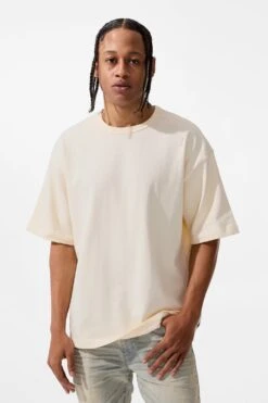 *Damaris is 6’1″ and weighs 180 lbs. He is wearing our Heavyweight Boxy T-Shirt (Size Large)