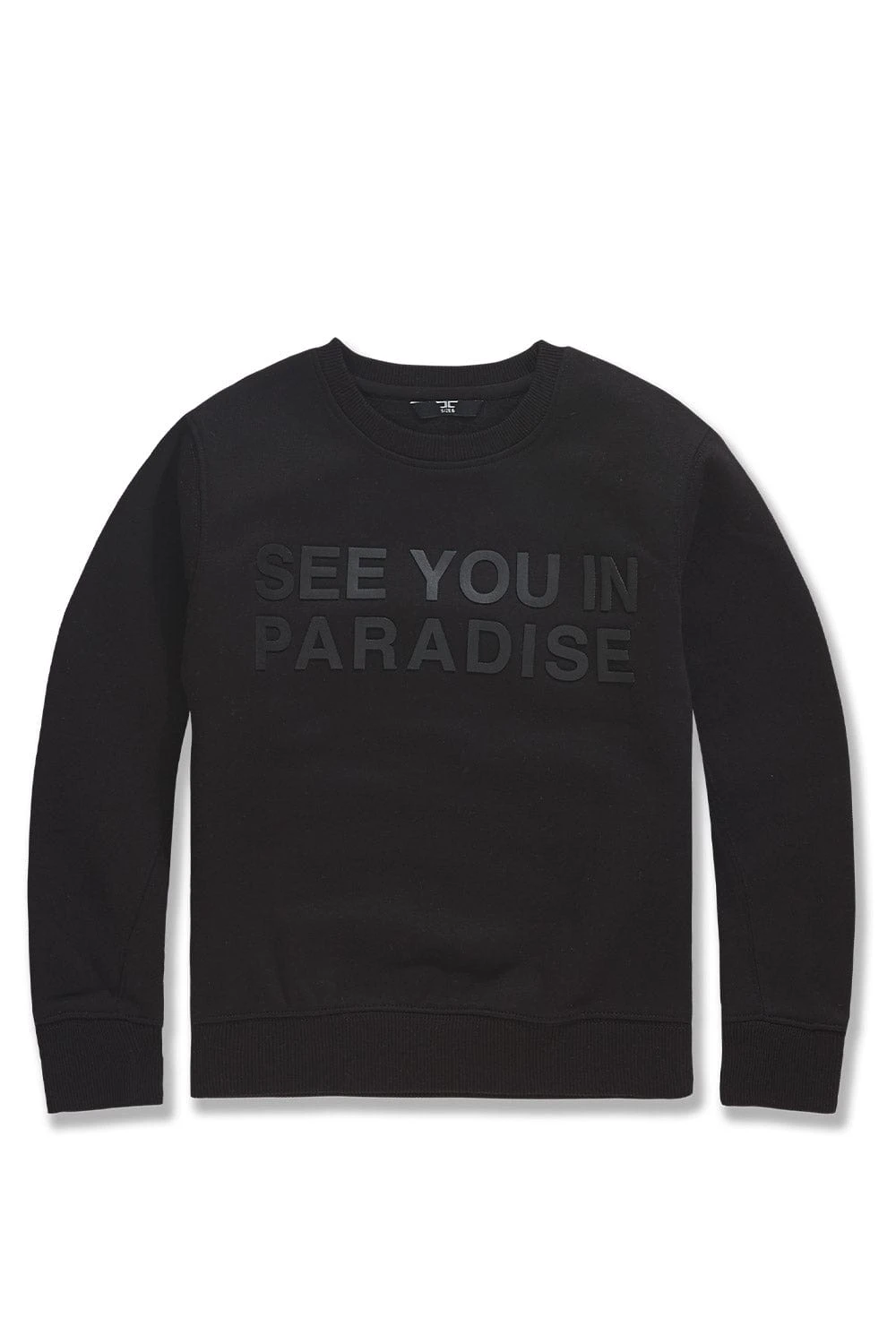 *Kade is wearing our Kids Crewneck Stacked Fleece Bundle (Size 6) in Black
