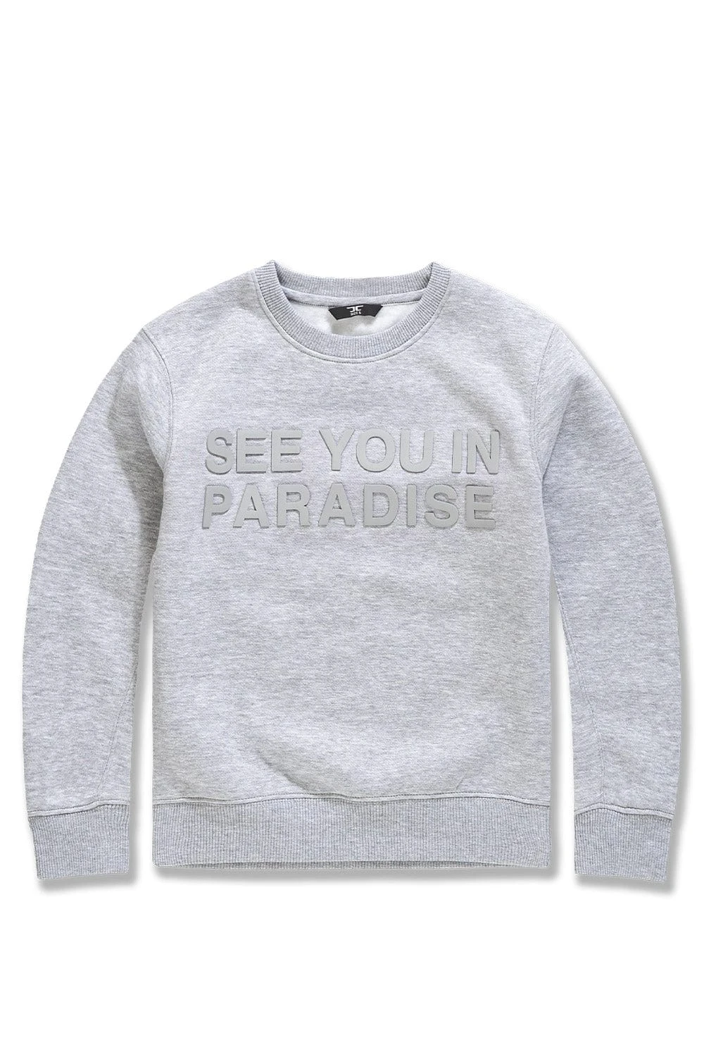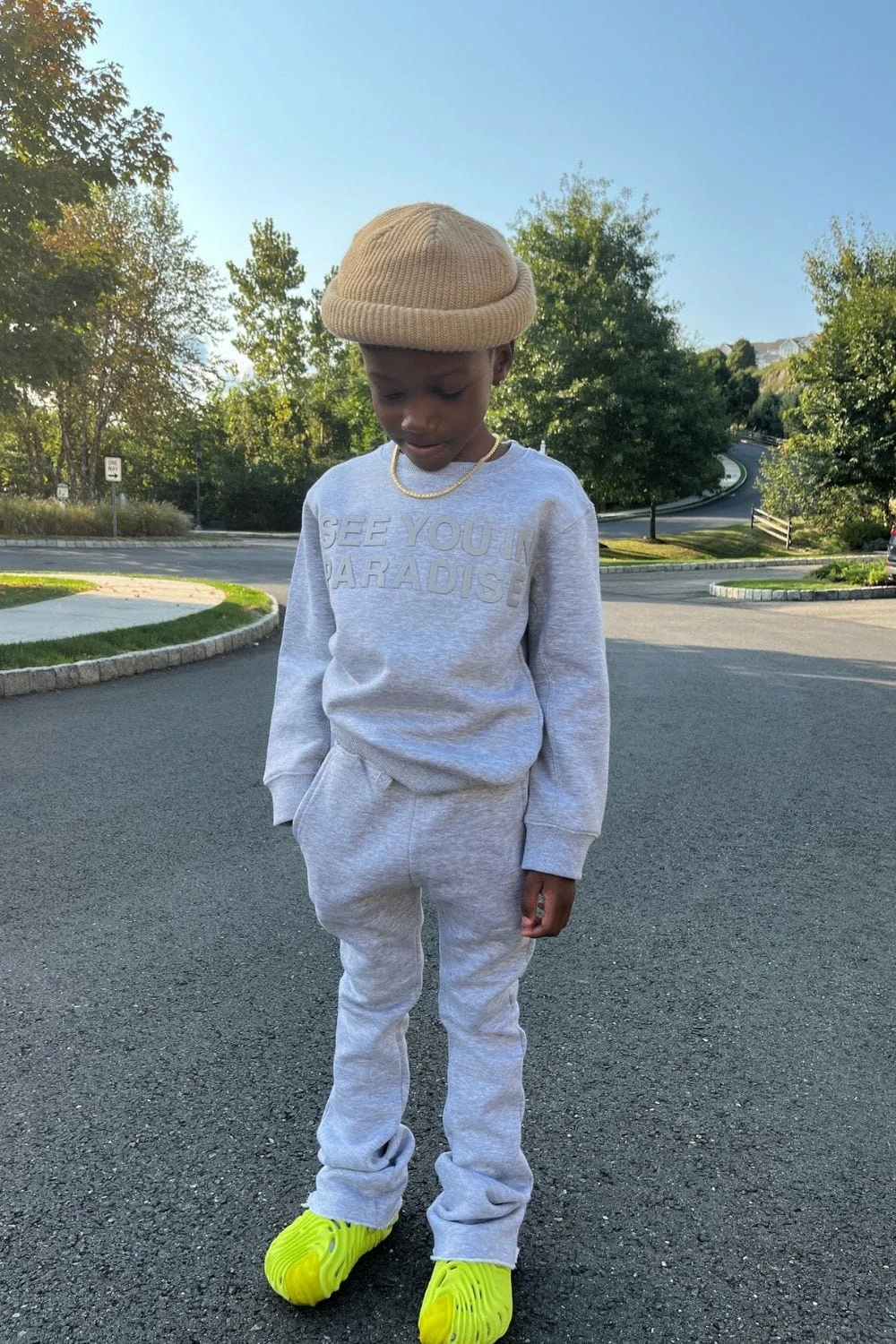 *Tristan is wearing our Kids Crewneck Stacked Fleece Bundle (Size 6) in Heather Grey. Tristan is 10 years old.