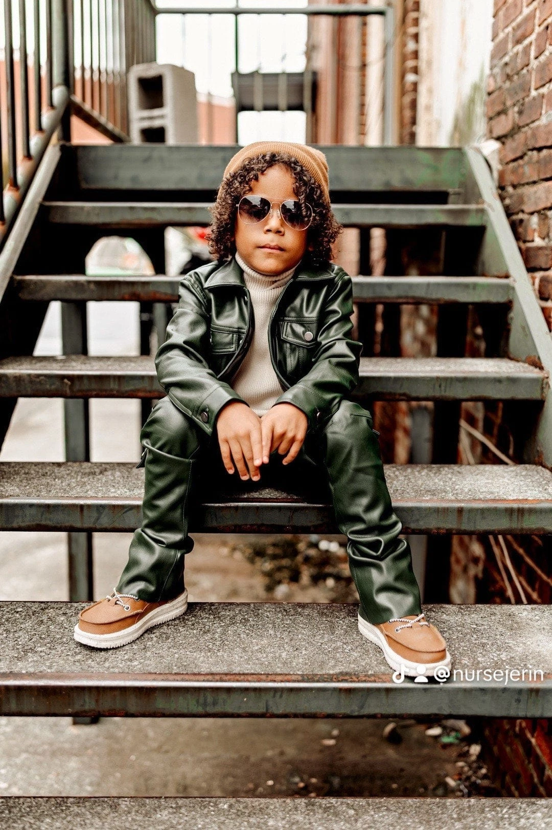 - Matches ourย Kids Thriller Trucker Jacket (Olive)