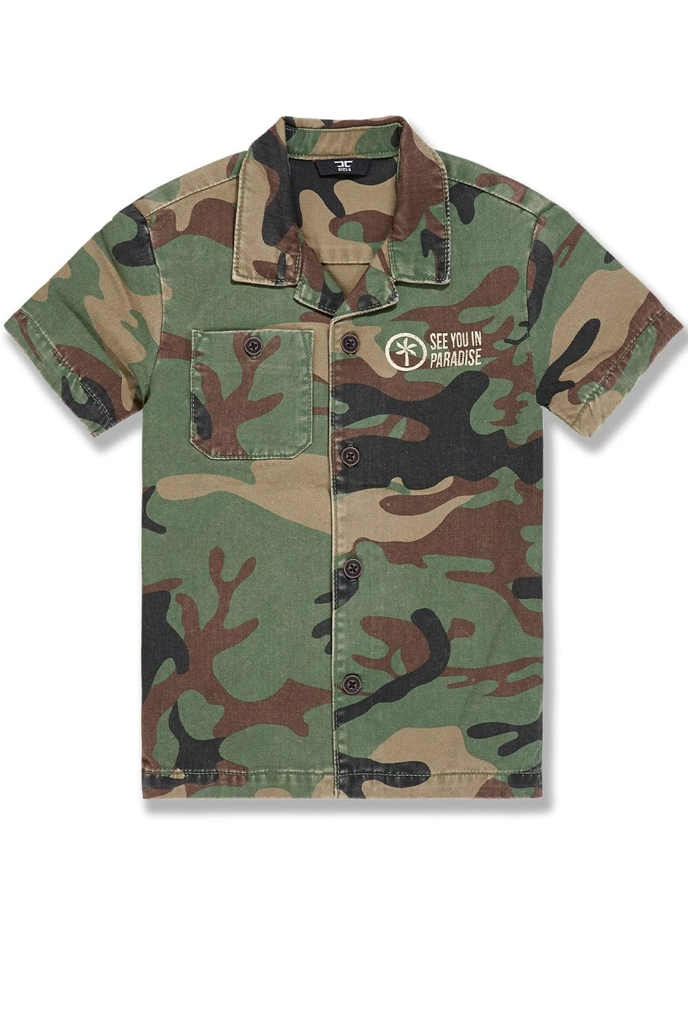 *Shawn is wearing our Kids SYIP Vintage S/S Work Shirt (Vintage Camo) in Size 8.