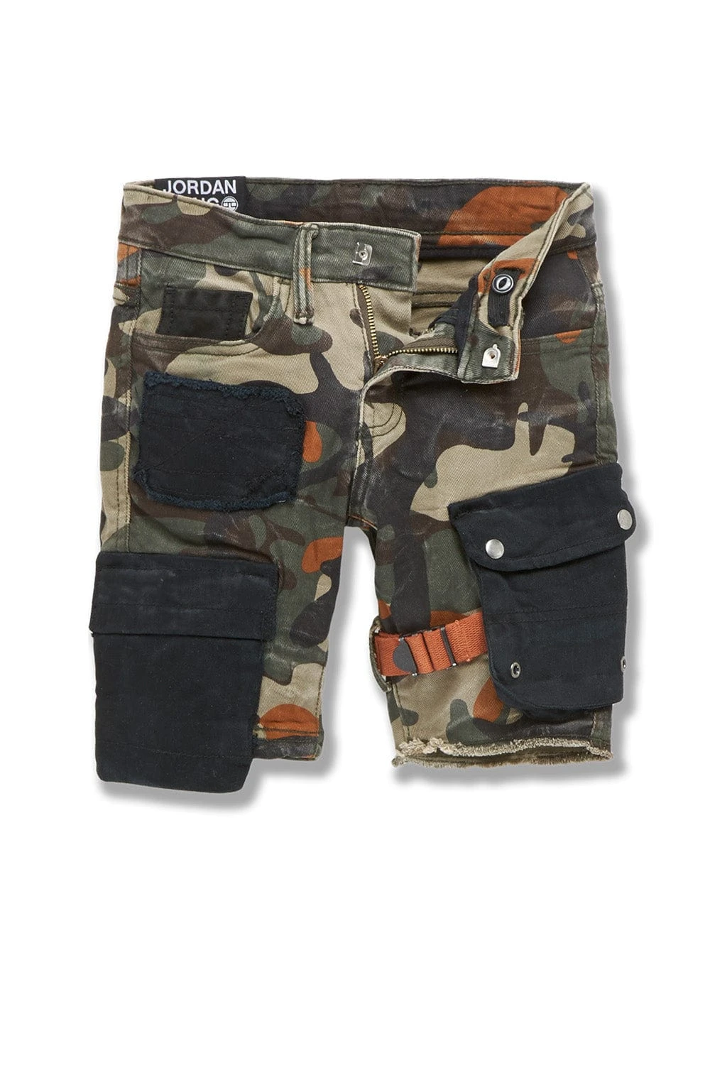 - Asymmetrical patched cargo pockets