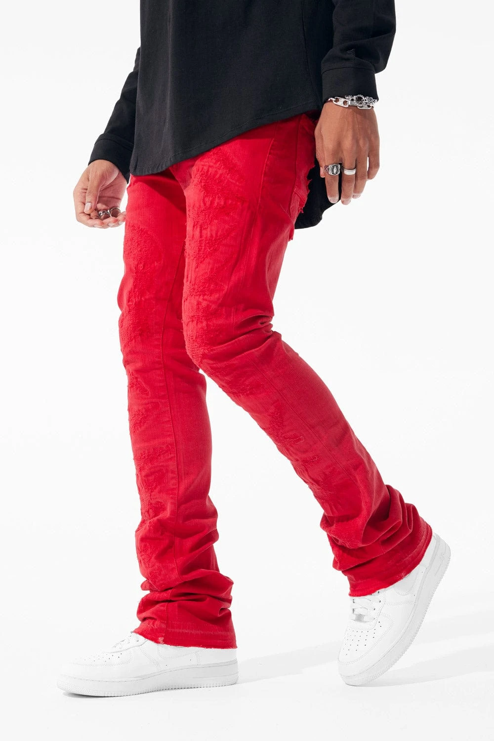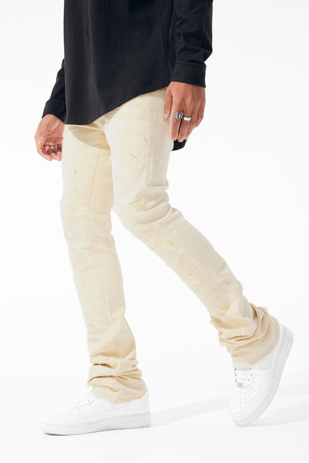 *Cozy is 6’1″ and weighs 170 lbs. He is wearing our Martin Stacked – Wynwood Denim (Size 32″)