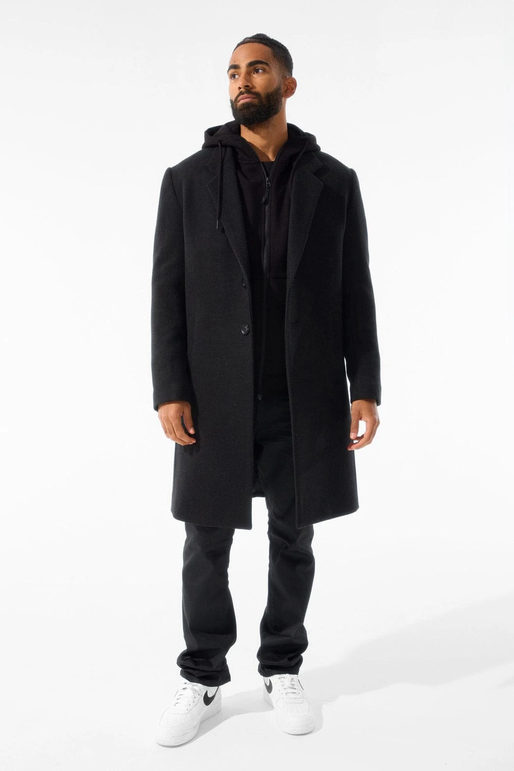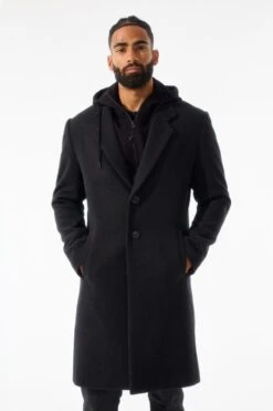 *Shomari is 6’1″ and weighs 175 lbs. He is wearing our Nolita Top Coat (Size Large) in Black