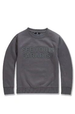 *Cozy is 6’1″ and weighs 170 lbs. He is wearing our Paradise Tonal Crewneck Sweatshirt (Size Large)