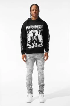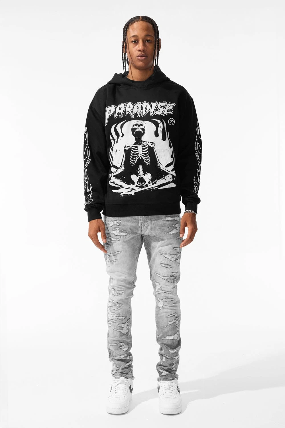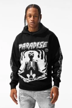 *Cozy is 6’1″ and weighs 170 lbs. He is wearing our Reincarnation Pullover Hoodieย (Size Large) in Black
