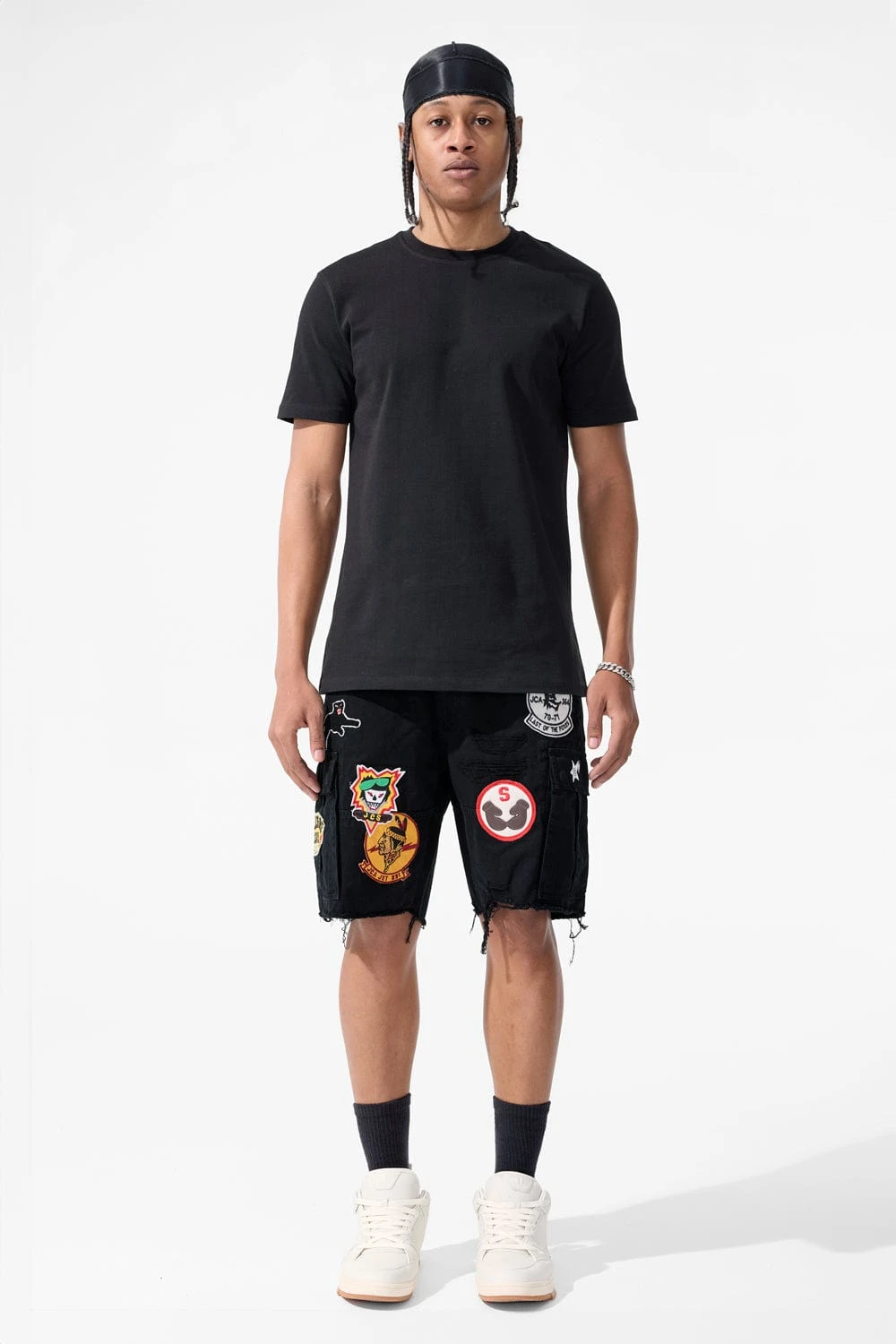 *Cozy is 6’1″ and weighs 170 lbs. He is wearing our Retro – War Angel Cargo Shorts (Size 32″)