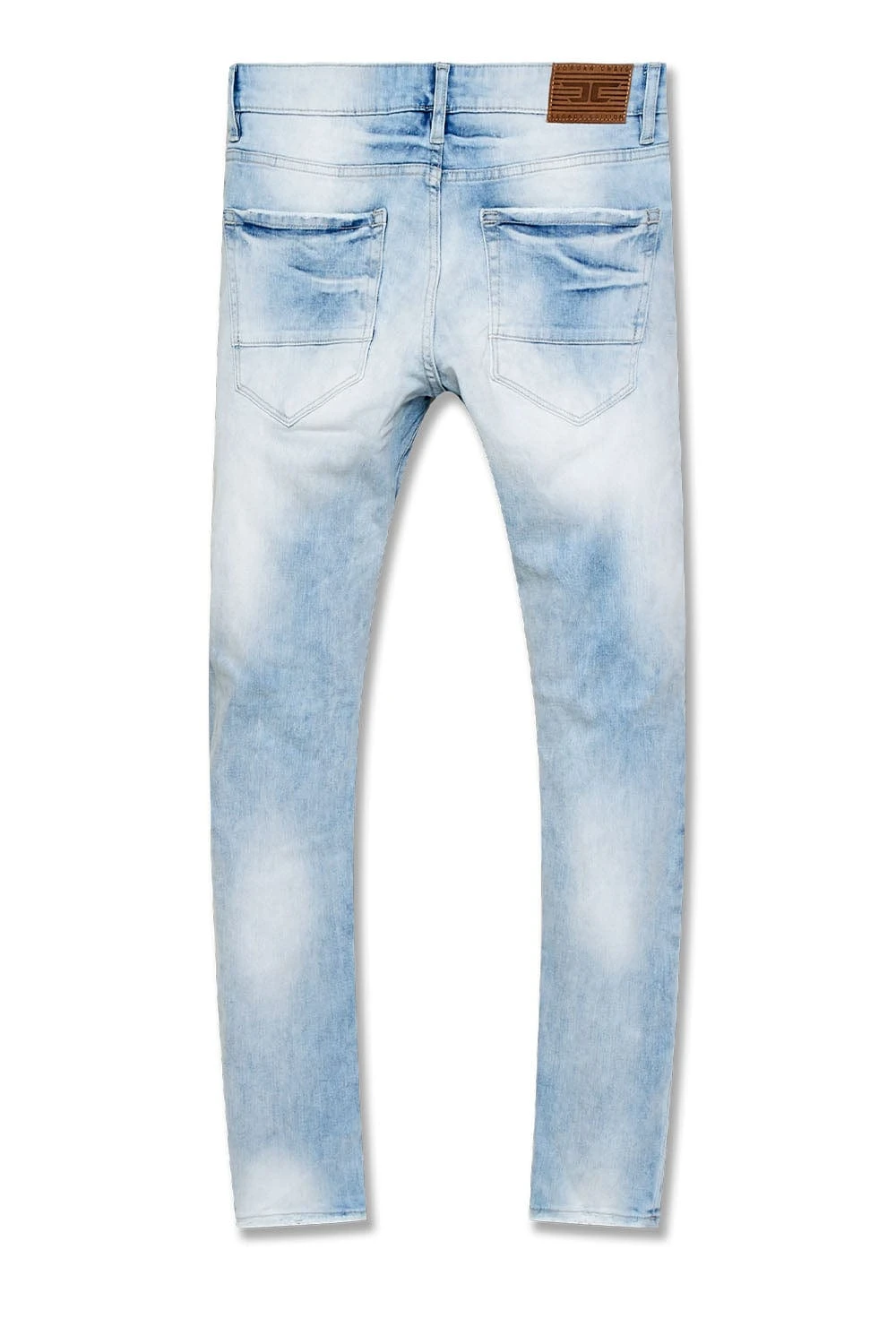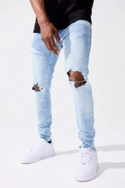 *Brandon is 6’2″ and weighs 180 lbs. He is wearing our Ross – Angelic Denim (32/32) in Ice Blue.