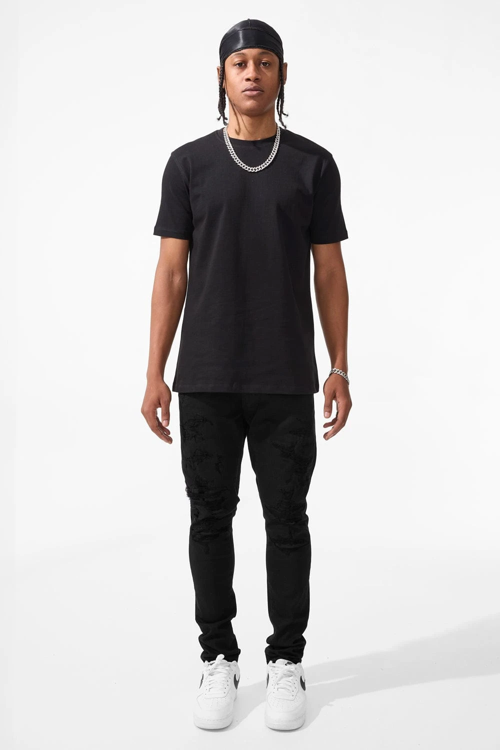 *Cozy is 6’1″ and weight 170 lbs. He is wearing our Sean – Stratosphere Denim (32×32) in Jet Black