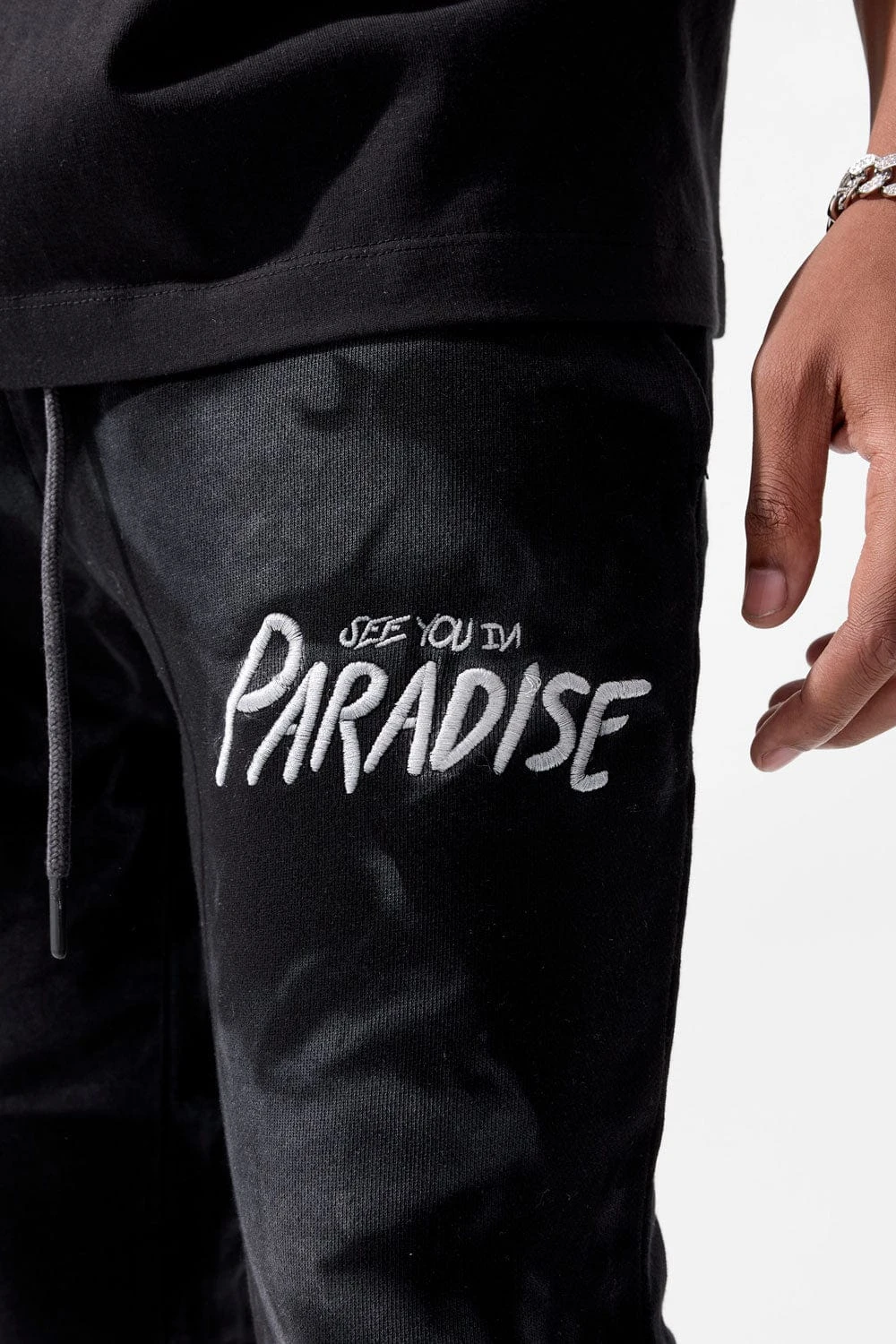*Cozy is 6’1″ and weighs 170 lbs. He is wearing our Surfside Stacked Sweatpants (Size Medium)