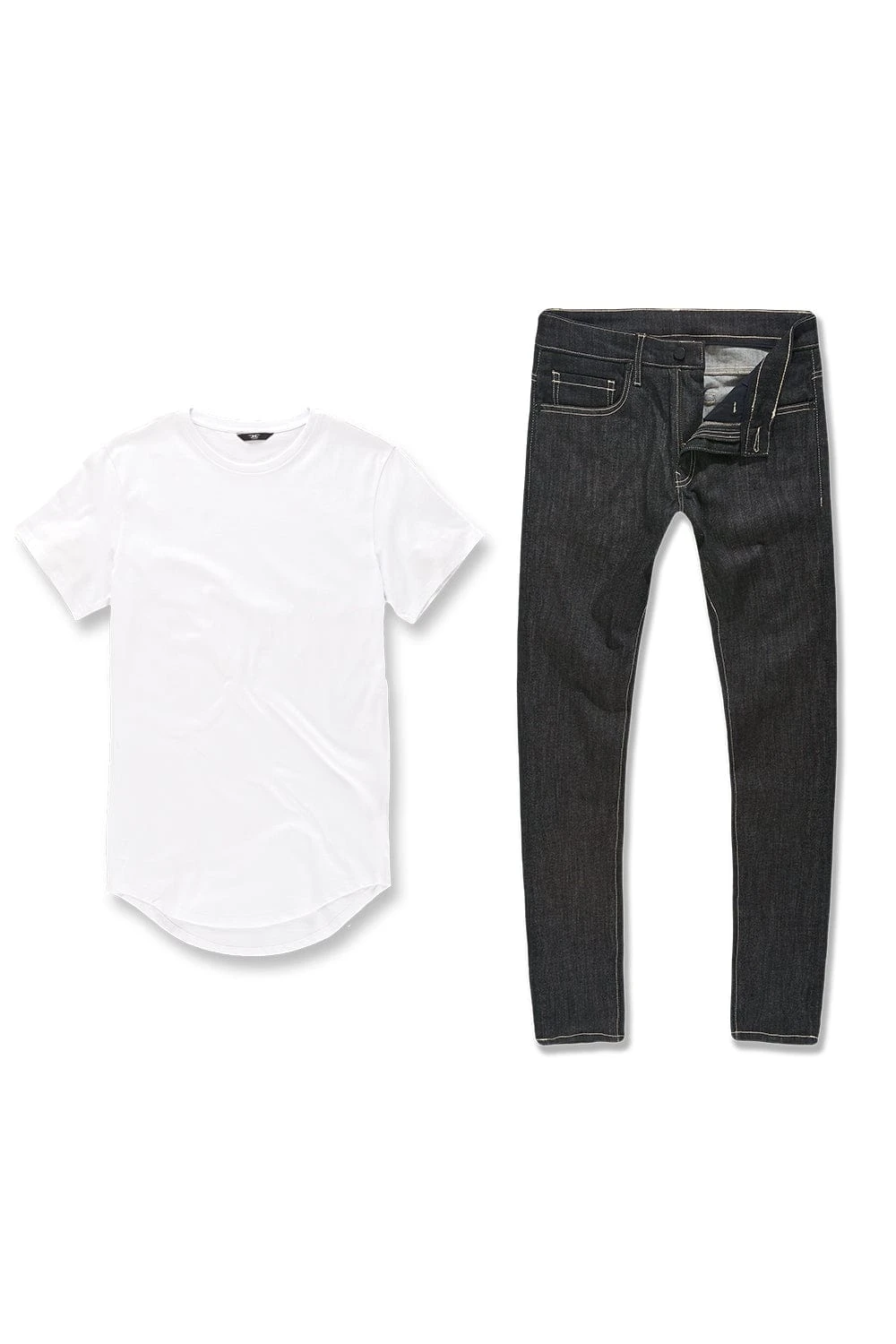 A dope pair of raw black denim and a scallop t-shirt for just $80? Say less 🤯 The Everyday Bundle includes: