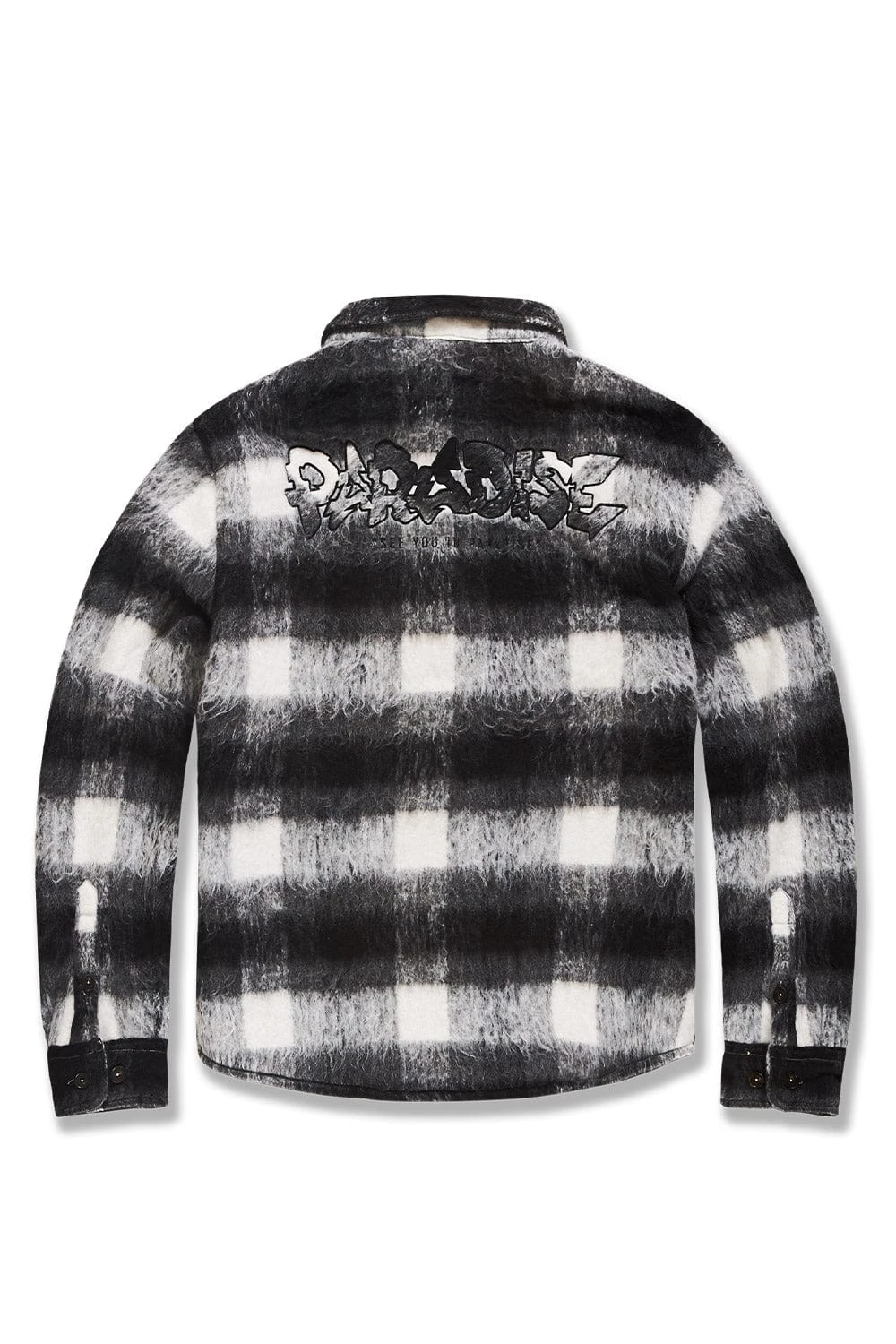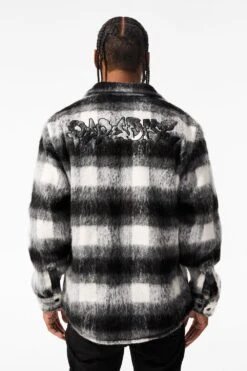 *Cozy is 6’1″ and weighs 170 lbs. He is wearing our Vandal Flannel Shacket (Size Large) in Black