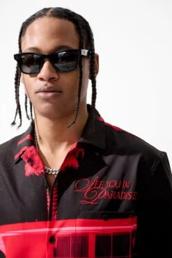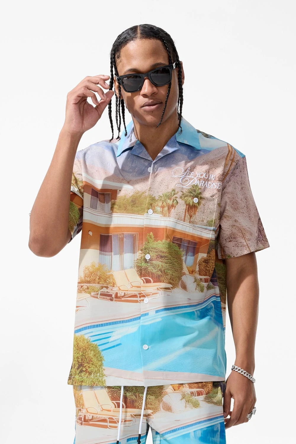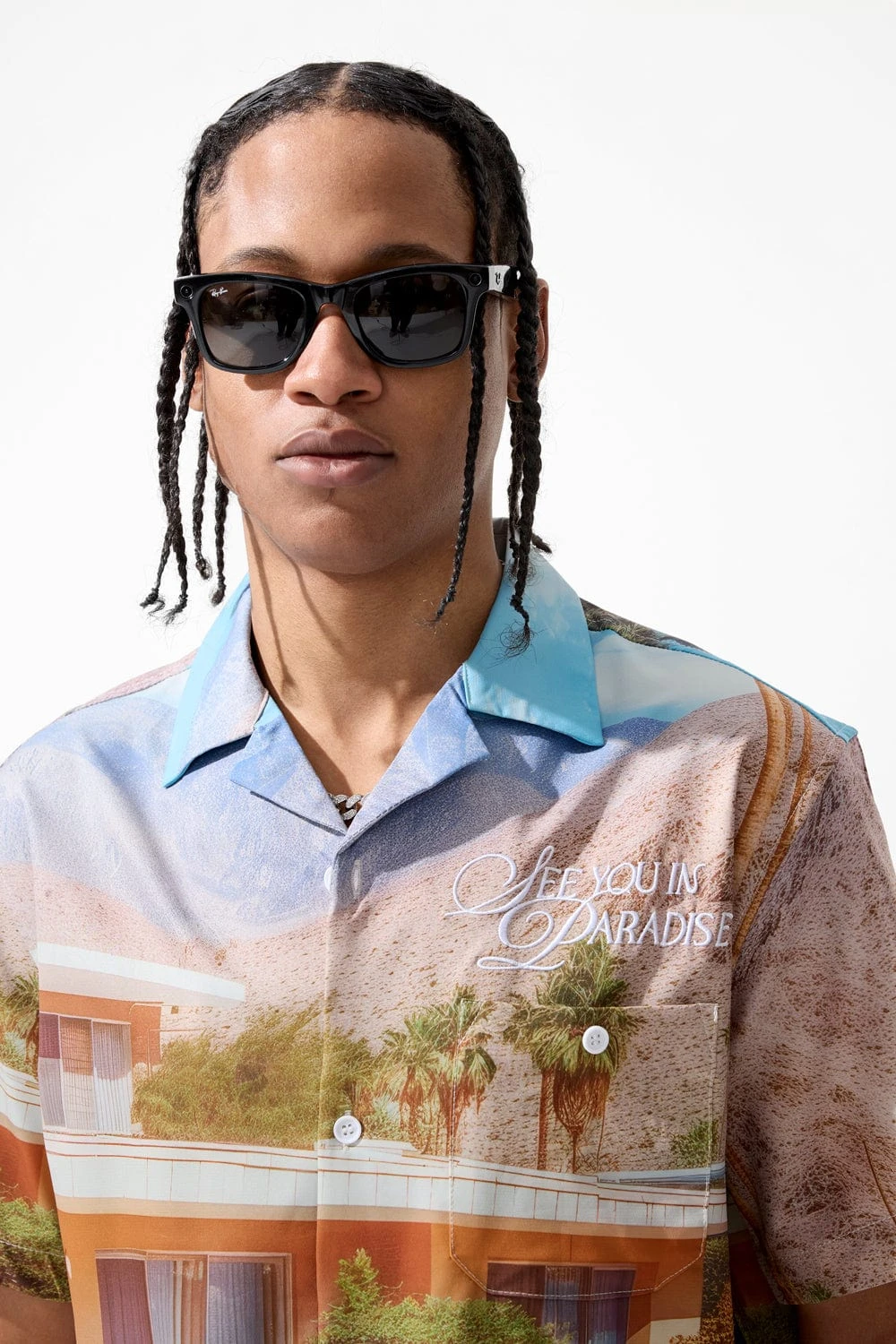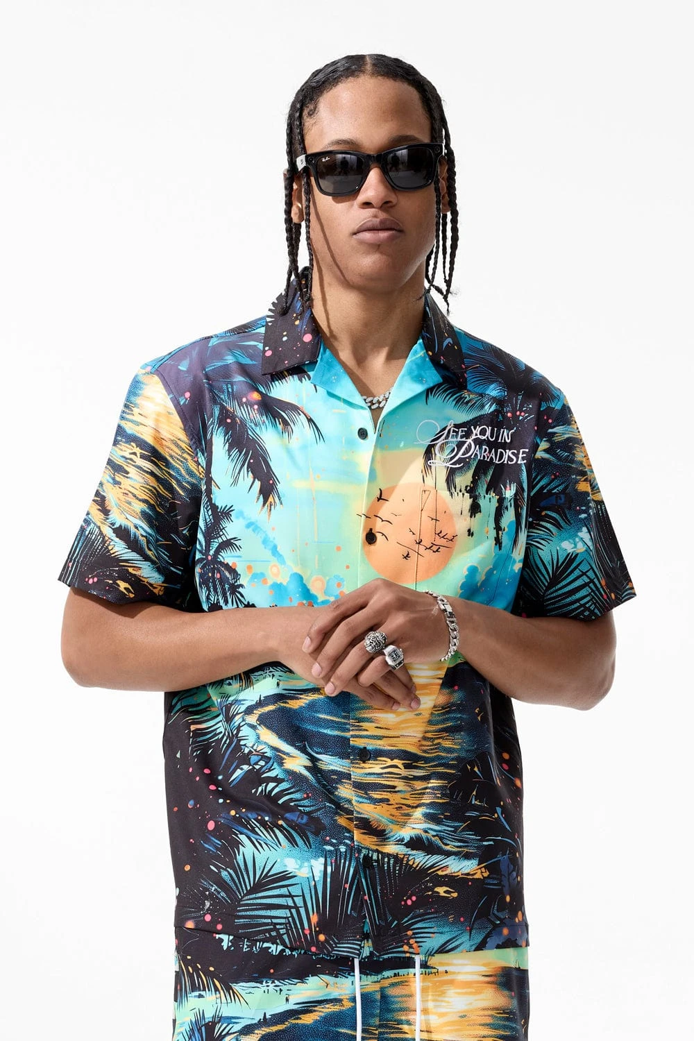 *Cozy is 6’1″ and weighs 170 lbs. He is wearing our Wanderlust S/S Party Shirt (Size Large)