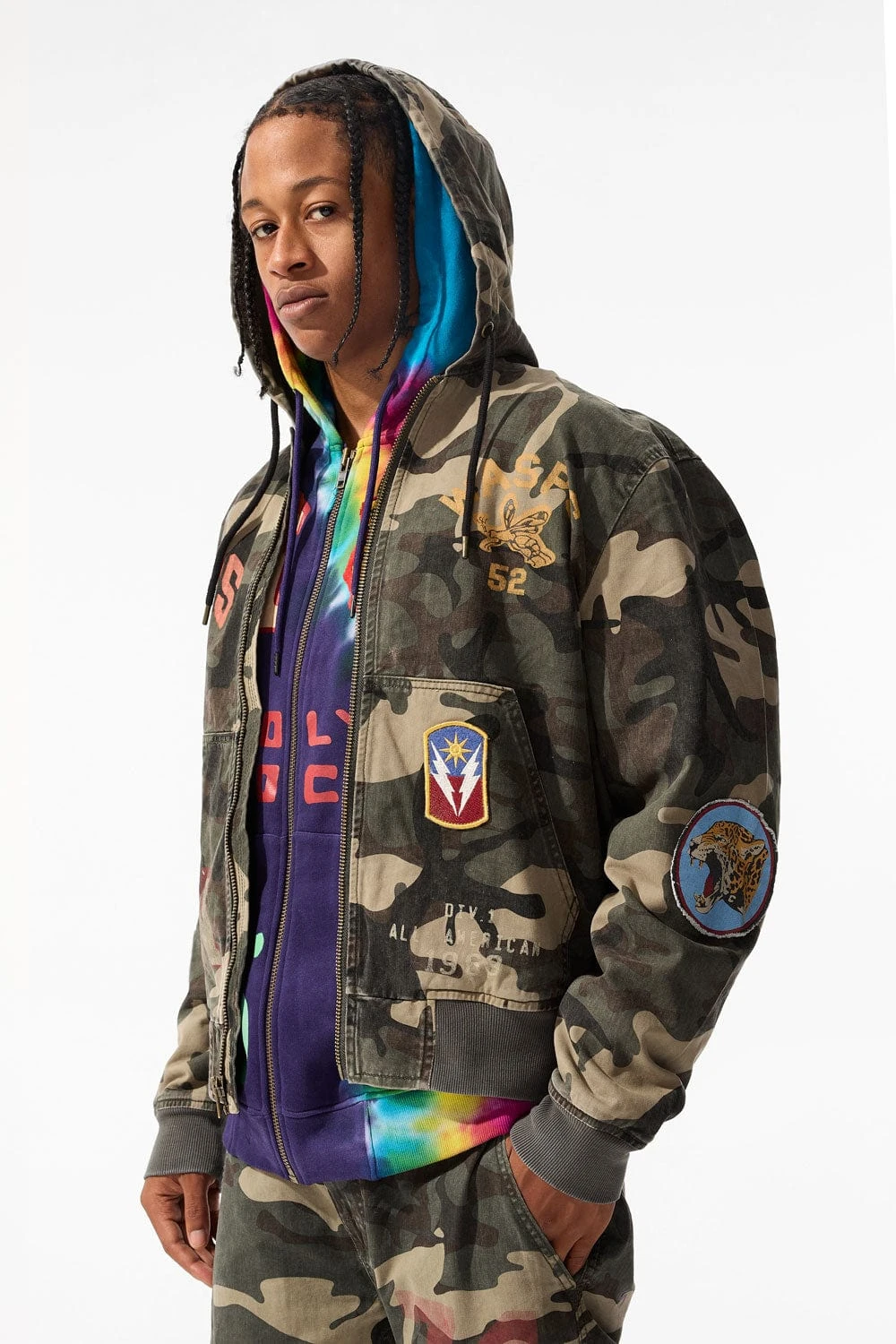 *Cozy is 6’1″ and weighs 170 lbs. He is wearing our Wooster Hooded Work Jacket (Size Large) in Woodland